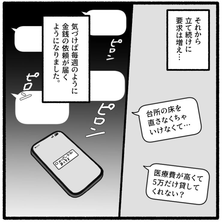 OTHER 2025.10.26「息子でしょ?10万円貸して」毎月大金を要求する義母!合計金額がとんでもないことになり返金を要求しに、義実家に突撃→お金を無心してきた本当の理由がそこにあった・・・衝撃のエピソードを漫画化!今回はある日をさかいにまとまった金額を要求してくるようになった義母とその衝撃の理由のお話をご紹介します。123#漫画