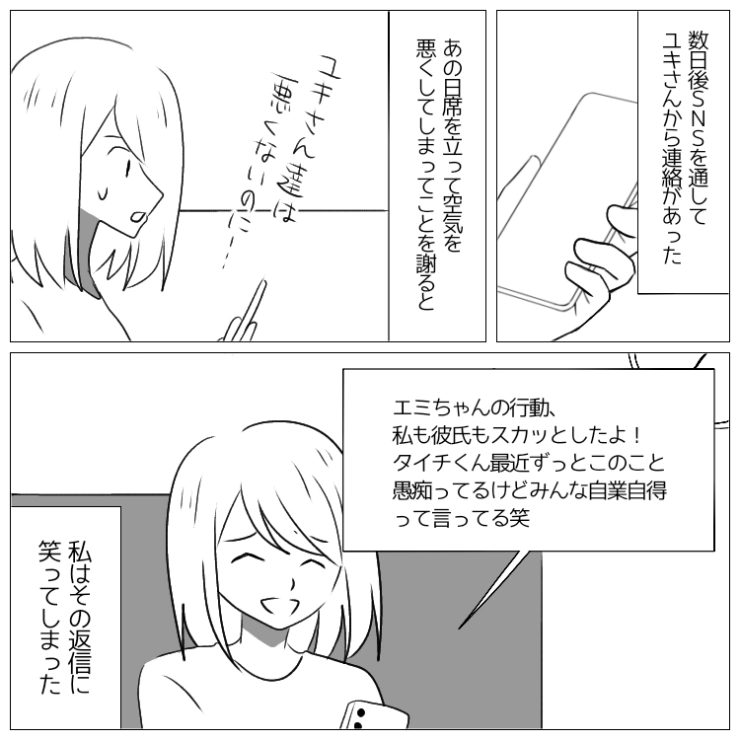 OTHER 2025.10.26「お前は、料理も下手だし、最近太った。あの子を見習えよ」いつも私を見下してくる彼氏!友達カップルの前でも貶してくる姿を見て我慢の限界がきたので・・・衝撃のエピソードを漫画化!今回は常に主人公を見下し、友達カップルの前でも貶してくる彼氏の話をご紹介します。友達カップルの彼女もさすがにタイチの言動にイラッとしていたようで、スカッとしたと言ってくれたことで心が軽くなった主人公でした。原作・作画/にちゃん1234#漫画