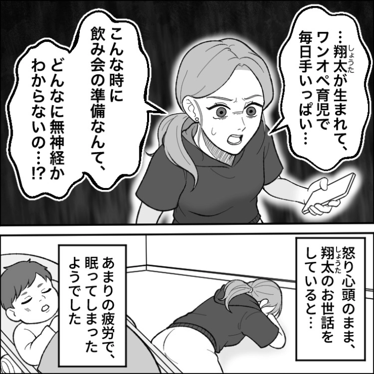 OTHER 2025.11.01「同僚が出産祝いで俺の家にくるから準備して」産後間も無く、我が家で飲み会をしようと私に準備までさせる夫!断固拒否と伝えると夫の同僚がとった驚きの行動は・・・衝撃のエピソードを漫画化!今回は出産した直後、自宅に帰ると育児を手伝うどころか飲み会の準備までさせてようとしてくる夫のお話をご紹介します。1234#漫画