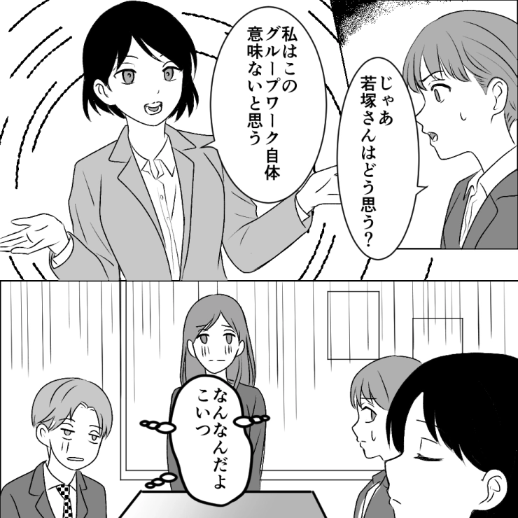 グループワークでも意見を出さず、否定ばかりの問題児。この後の役員プレゼンでは、全員の信頼をなくす決定的な出来事が・・・。