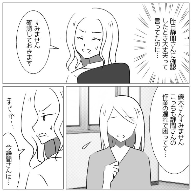 静間さんのせいで数々の業務が滞っているとクレームの嵐。実は彼女の問題行動は始まったばかりで・・・。