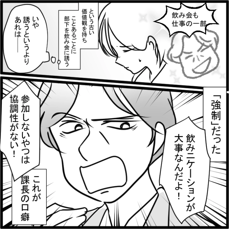 OTHER 2025.11.09「飲み会は強制!来ないやつは協調性がないから評価しない」飲み会も仕事の一部とする課長!毎日のように誘われて部署全員が困っていた→ある日ついに転機が訪れて・・・衝撃のエピソードを漫画化!今回は毎日のように飲み会に強制参加させる厄介な上司のお話をご紹介します。主人公は都内の企業で働くアラサー女子。仕事は楽しくやっていたが、課長という厄介な存在に困っていて・・・。123#漫画