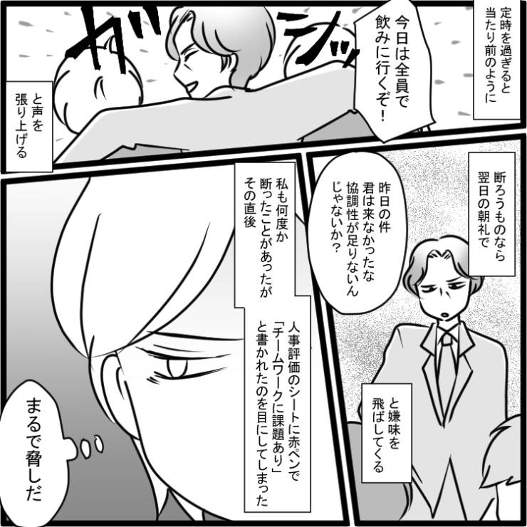 OTHER 2025.11.09「飲み会は強制!来ないやつは協調性がないから評価しない」飲み会も仕事の一部とする課長!毎日のように誘われて部署全員が困っていた→ある日ついに転機が訪れて・・・衝撃のエピソードを漫画化!今回は毎日のように飲み会に強制参加させる厄介な上司のお話をご紹介します。123#漫画