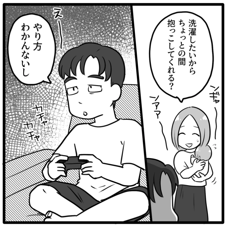 「洗濯するから抱っこして」→「やり方わからないから無理」育児を一切しない夫!私が倒れ、夫が子供の世話を見ることに→当然何もできず義母に助けを求めた結果・・・