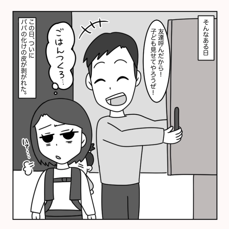 育児で疲弊している主人公を労わりもせず友達を自宅に招いた夫。この出来事でついに夫の偽イクメンの仮面が剥がれることに・・・。