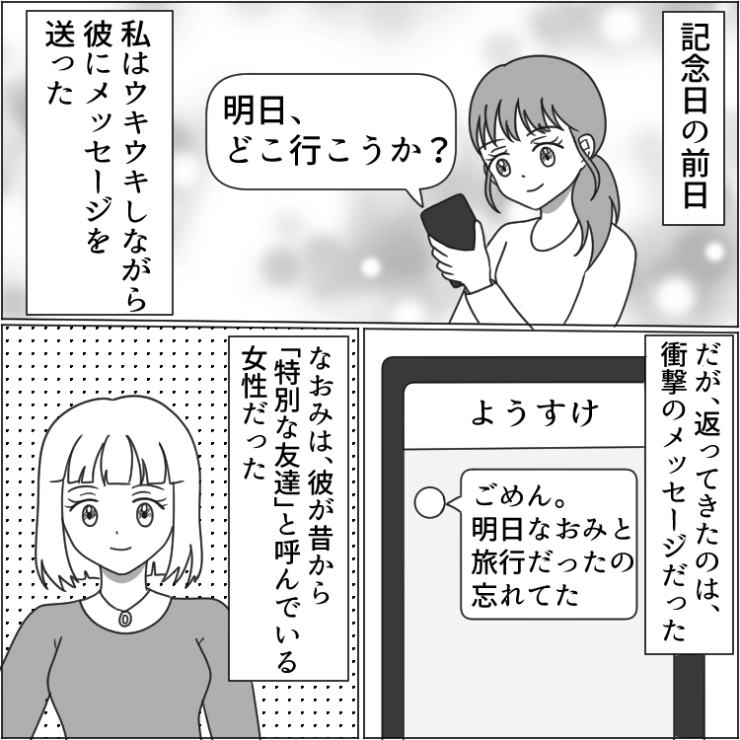OTHER 2025.11.29私との記念日デートよりも女友達との旅行を優先する彼氏!飲み会でも私を放置してイチャイチャ→友達の距離を超えているので、第三者の前で現実を思い知らせたら・・・衝撃のエピソードを漫画化!今回は彼女とのデートよりも女友達との旅行を優先するデリカシーも思いやりもない彼氏のお話をご紹介します。主人公には付き合って1年になる彼氏がいます。しかし、この彼氏、昔から女性との距離がおかしく散々悩まされてきた主人公・・・。123#漫画