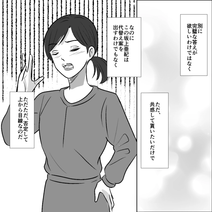 なぜか上から目線で否定ばかりしてくる坂上さん。この人とは仲良くなれないなと感じていた主人公。この後、ママ友の1人がついに坂上さんを撃退してくれることに!
