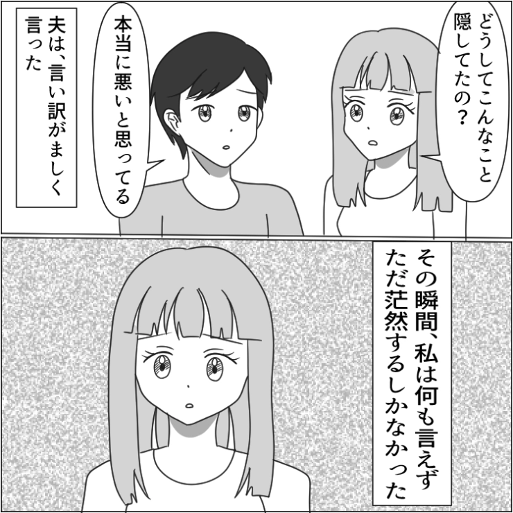 このタイミングで夫には借金があったことが発覚。もちろん借金があることもショックだった主人公ですが、もっとショックだったことは・・・。