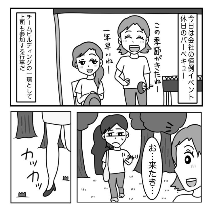 会社の懇親会BBQにまさかの露出度MAXのミニスカワンピースで登場した女性社員!この後、空気の読めなさはさらに暴走して・・・。