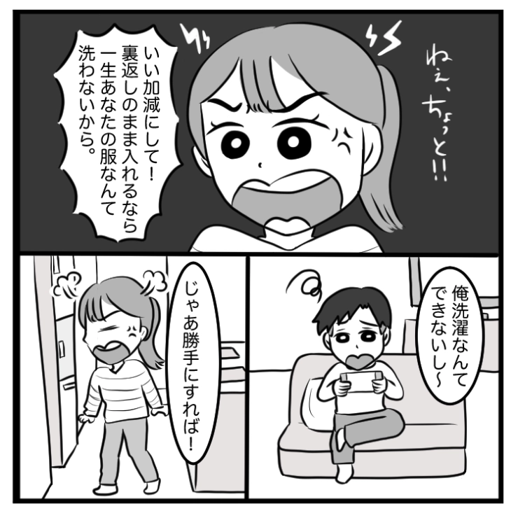 OTHER 2025.12.06「洗濯なんてやったことないから無理」家事を手伝ってとお願いしても言い訳ばかりで一切しない夫!洗濯カゴに入れてという簡単な依頼も無視するので夫の洗濯物を放置したら・・・衝撃のエピソードを漫画化!今回は「できない」「やったことない」という理由で一切家事をしない同棲彼氏のお話をご紹介します。「やり方わからない」「わかるお前がやれ」家事を手伝ってとお願いしても言い訳ばかりで一切しない夫!洗濯カゴに入れてという簡単な依頼も無視するので夫の洗濯物を放置したら・・・1234#漫画