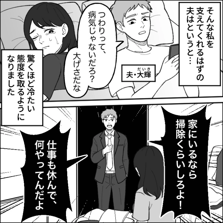 OTHER 2025.12.07「つわりは病気じゃない。家事やれよ」妊娠して体を思ように動かせない私を責める夫!自分は何もせず、大声で怒鳴るだけ→一緒に子供を育てられないと思った私はある決意を固めて・・・衝撃のエピソードを漫画化!今回は「つわりは病気じゃないから家事は完璧にやれ」と妊娠中の主人公が家事をやれないことを責める夫のお話をご紹介します。主人公は妊娠し、ひどいつわりに悩まされていました。そんなとき1番支えになってほしいのは夫なのですが・・・。123#漫画