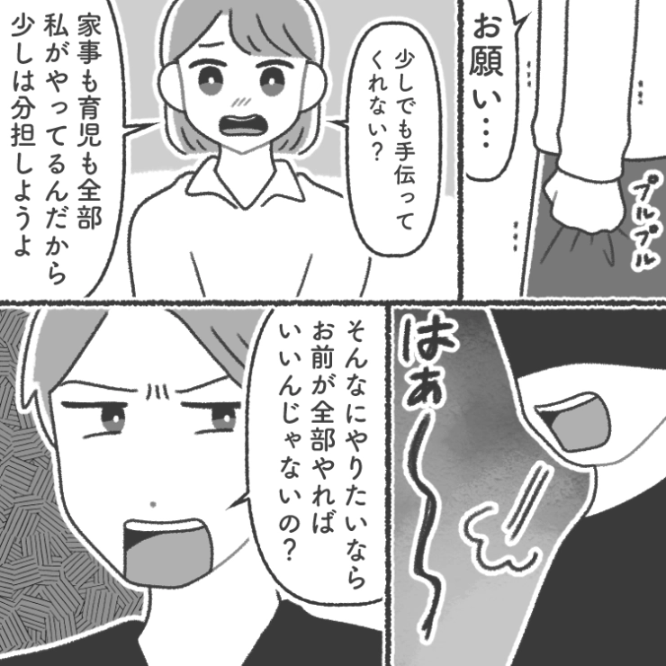 共働きなのに一切家のことはしない夫!少しでいいかな手伝ってと譲歩したお願いにも関わらず取りつく島もない返答に主人公はこの後・・・。
