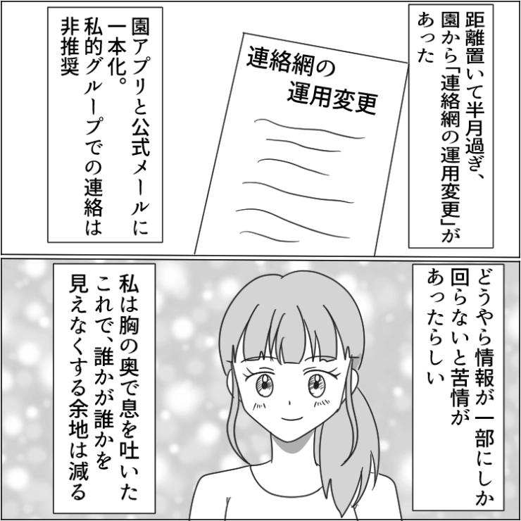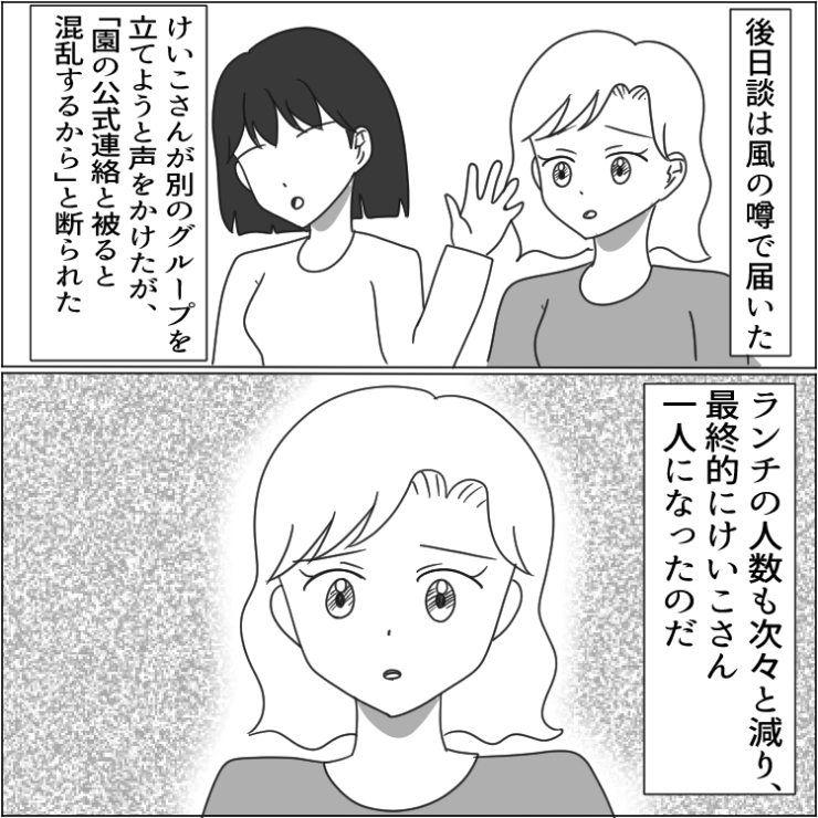 結局取り巻きが全員離れた結果、ボスママに従う人はいなくなり、幼稚園に平和が戻ることになりました。