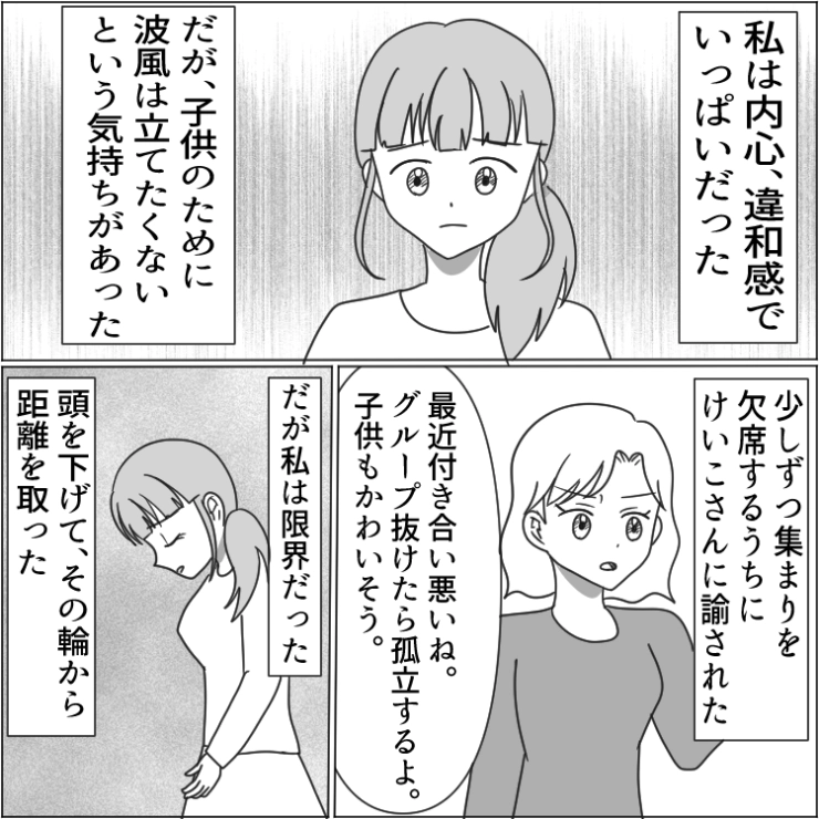 衝撃のエピソードを漫画化!今回は自分の言うことに少しでも反対する人をグループから孤立させるママ友のお話をご紹介します。
