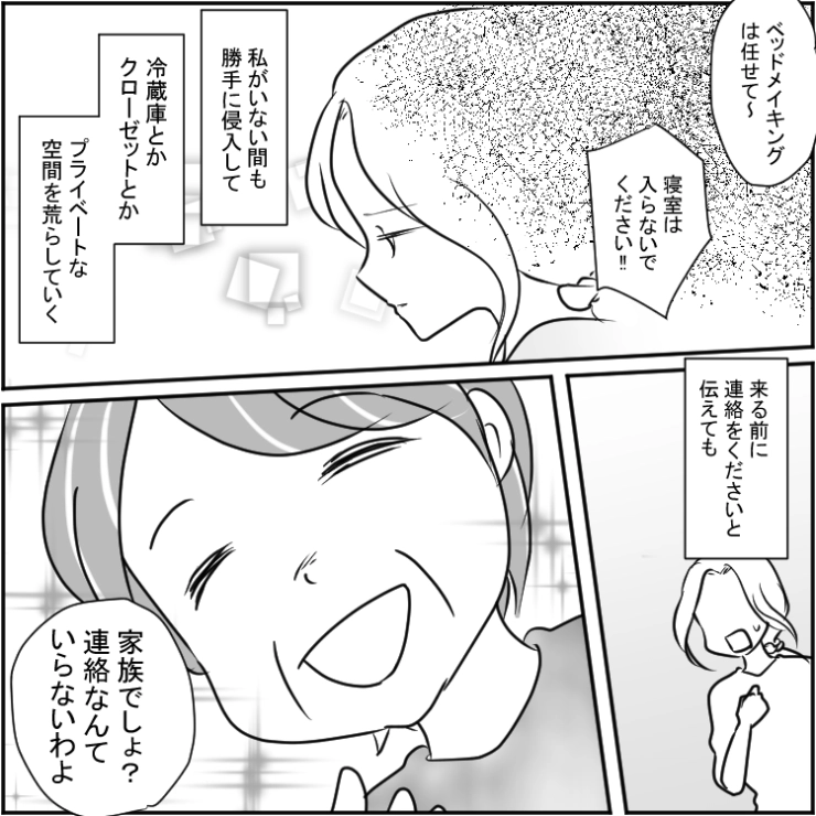 衝撃のエピソードを漫画化!今回は我が家の合鍵を使って突撃してきては好き放題暴れる義母のお話をご紹介します。