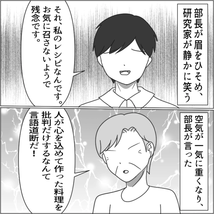 「明日までにこの料理の改良案を出せ」私が作る料理に評論家目線でコメントする夫!自分では準備すらできないくせに文句ばかりなので、夫が上司を我が家に招いたときに・・・