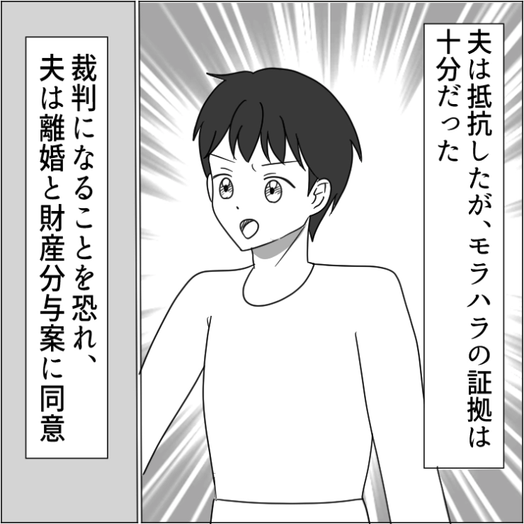 最後まで自分の行動を反省せず、抵抗を続けた夫でしたが、証拠は十分あり、離婚をせざるを得なくなったのでした。