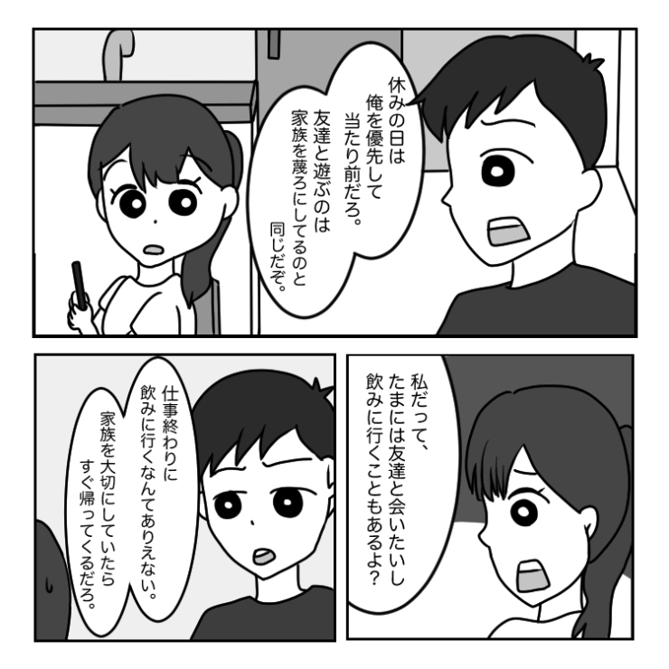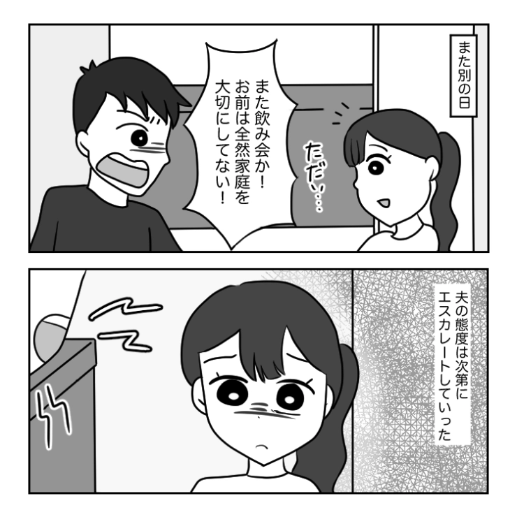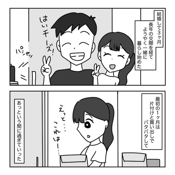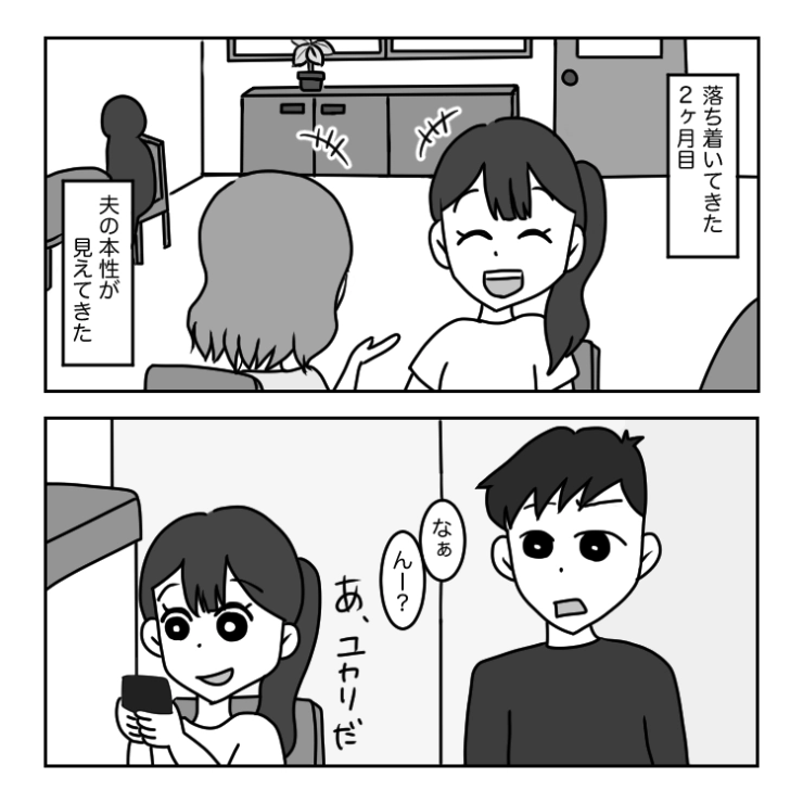 結婚して3ヶ月になる主人公はようやく新生活にも慣れてきたころ。今まで気づかなかった夫の言動が見えてきて・・・。