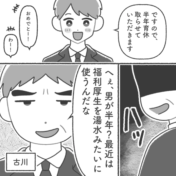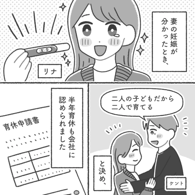 妻が妊娠し、初めての子育てを2人で乗り切るために半年の育児休暇を会社に申請した主人公でしたが・・・。