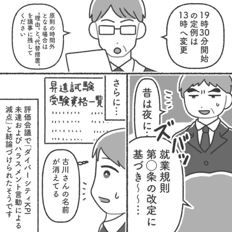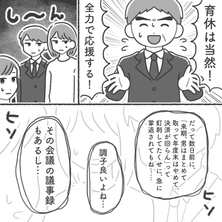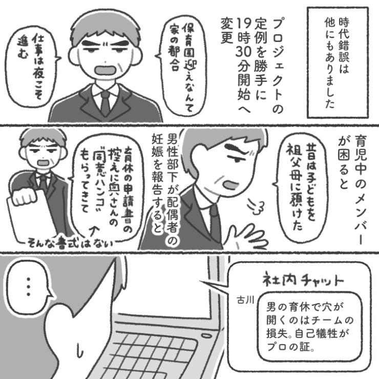 「男なのに育休?出世コースはずれるぞ」考え方をアップデートできないハラスメント上司!性差別をしたり、夜中に会議をしたり→働きづらいので正攻法で上司と戦ったら・・・