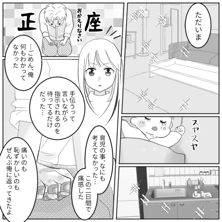 「ミルクってどうやって作る?」「ゲップってどうやる?」自分で考えられず、なんでも聞いてくる夫!反省、成長させるために2日間、子供と夫を2人きりにしてみたら・・・