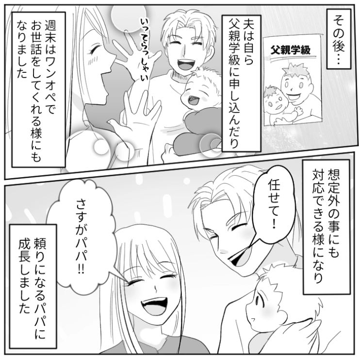 少し強引な方法だったかもしれませんが、結果として夫は1人で子供の面倒をみることができるまでに成長したのでした。