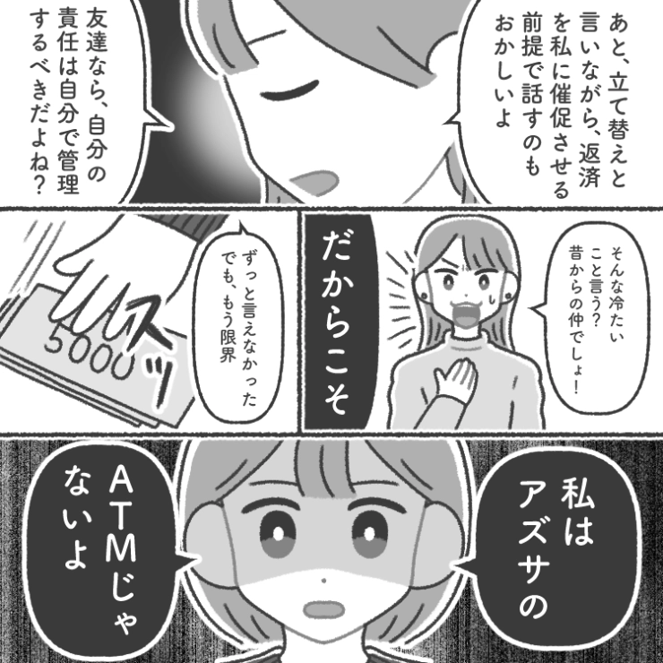 非常識すぎる女友達と縁を切ることにした主人公。お金にだらしない人と付き合うことは損なことしかないのかもしれませんね。