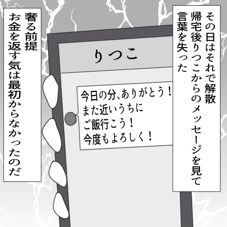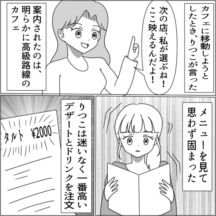 衝撃のエピソードを漫画化!今回はお金がないと言ってご飯代もカフェ代も主人公に奢らせるくせにSNSでは贅沢三昧の友達のお話をご紹介します。