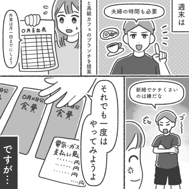 節約しろと口では言うくせに贅沢をしたり、単価の高い商品を買ったりと何もわかっていない夫。月4万円でのやりくりが無茶だと言うことをわからせるために主人公はこの後・・・。