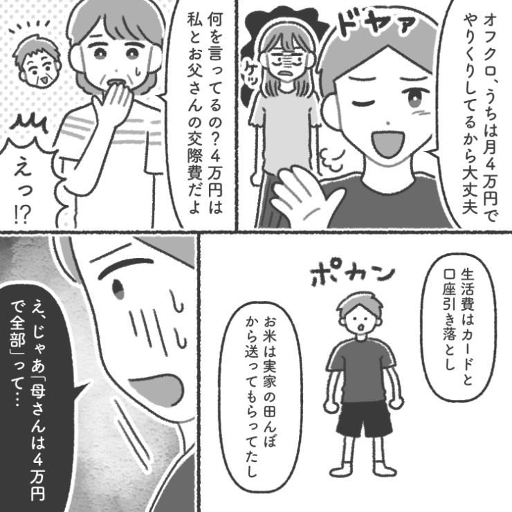 OTHER 2026.01.24「新婚だから贅沢したい!でも、生活費は4万円まで!」自分は節約上手だと思い込んでいる世間知らずな夫からの要求!あまりに無茶すぎることを言うので同じ条件で家計を任せたら・・・衝撃のエピソードを漫画化!今回は生活費は月4万でやりくりしろと言うくせに毎日デザートやコーヒーを買ったり、単価が高い食品ばかり買う世間知らずな夫のお話をご紹介します。自分がいかにバカだったかを自分で家計を管理するようになって、さらに義母から苦言を呈されてやっと理解した夫でした。原作・作画/agechan0071234#漫画