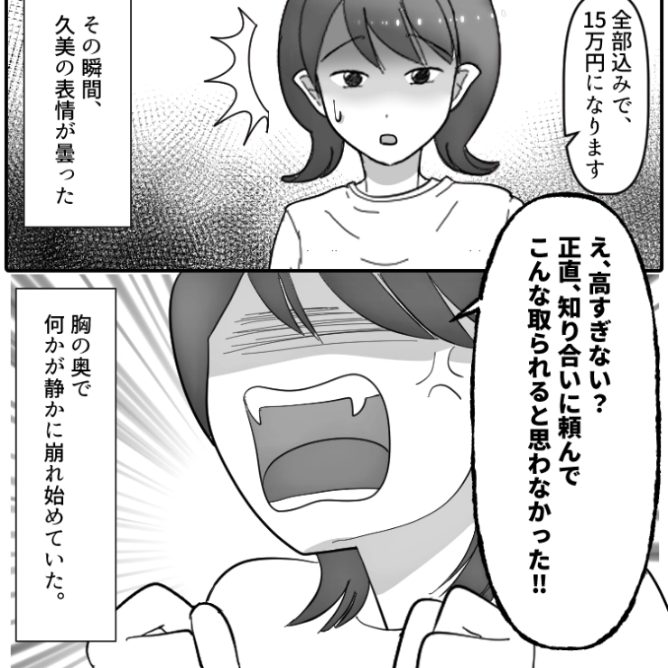 最終的に「タダでやって」とあり得ない要求をしてきた久美。親しき仲にも礼儀ありという言葉を無視した久美の態度に縁を切ることにした主人公でした。