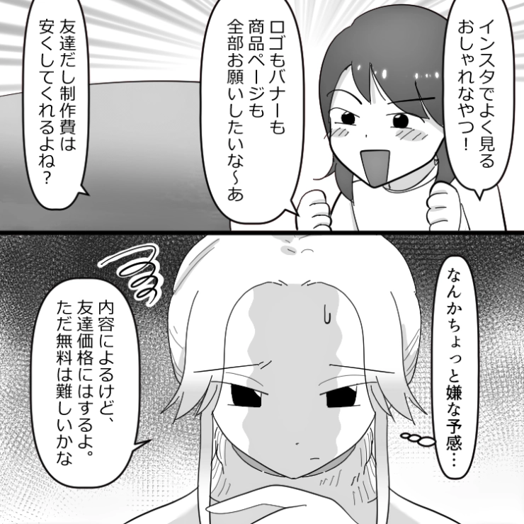 衝撃のエピソードを漫画化!今回は仕事の依頼をしてきた友達があまりに図々しくてドン引きした主人公のお話をご紹介します。