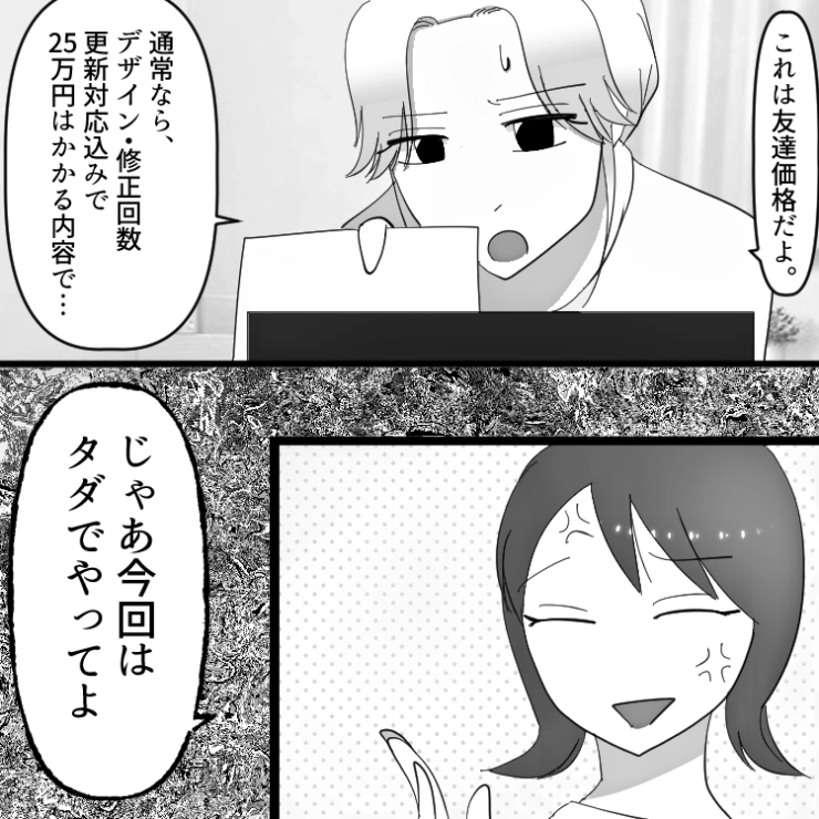「見積金額は15万円」→「友達割引きでタダでよろしく」友達に仕事を依頼されたら非常識すぎてドン引き!無茶な要求だけでなくお金も払う気がなさそうだったので・・・