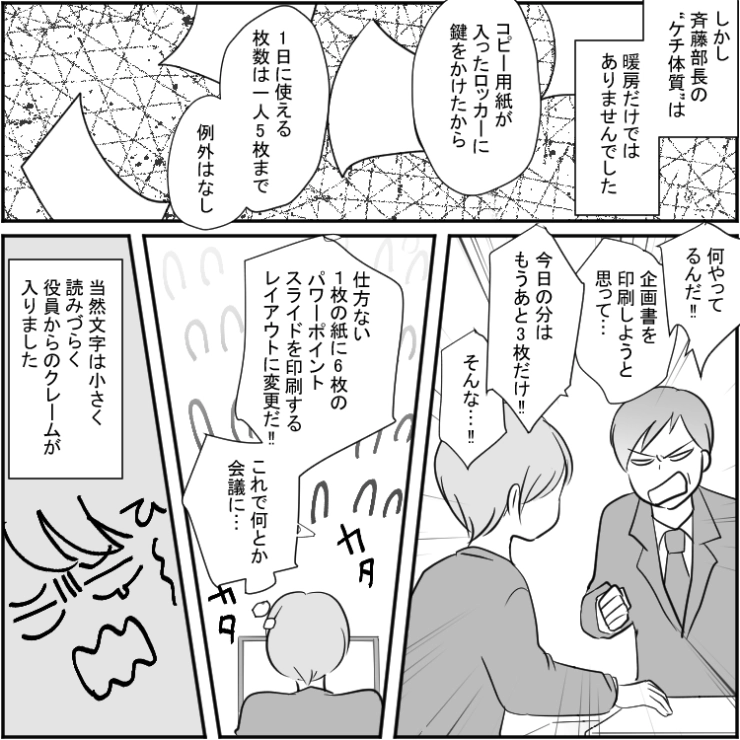 衝撃のエピソードを漫画化!今回はなぜか突然経費削減と言って暖房の使用を禁止し始めた上司のお話をご紹介します。