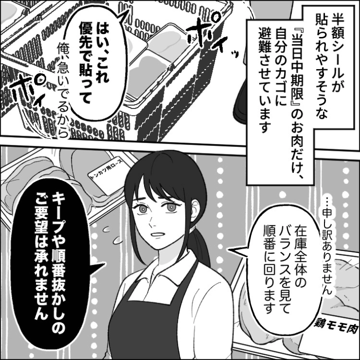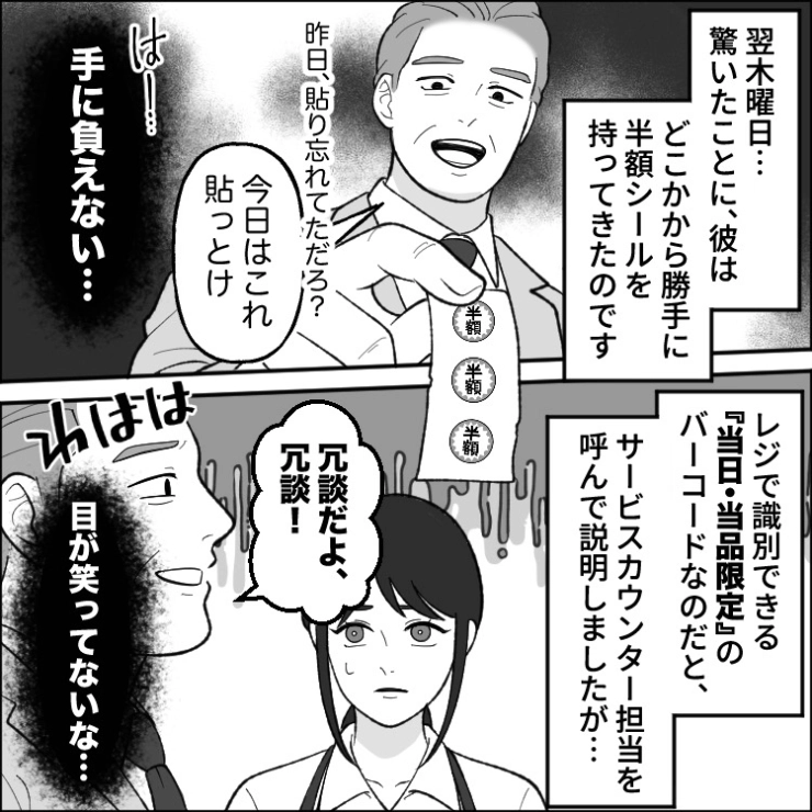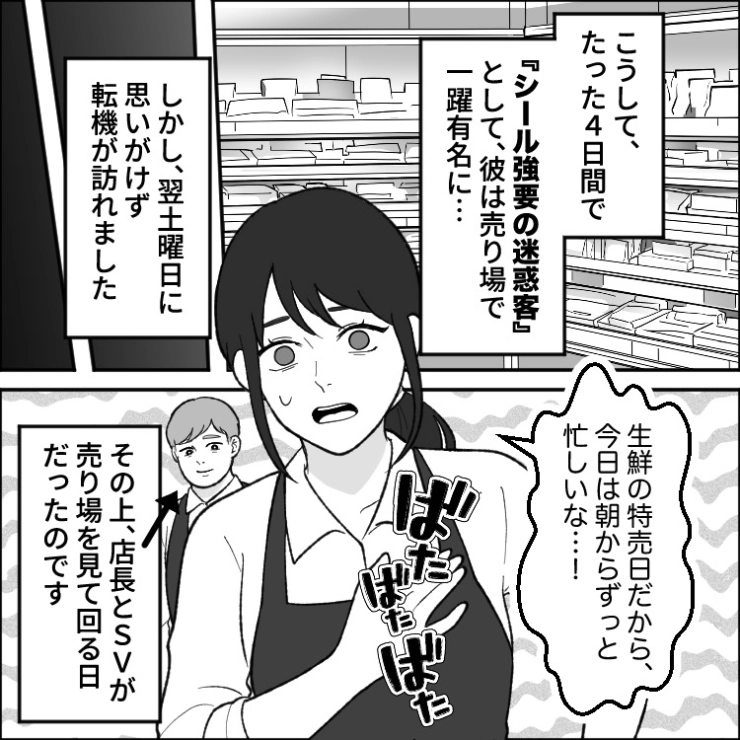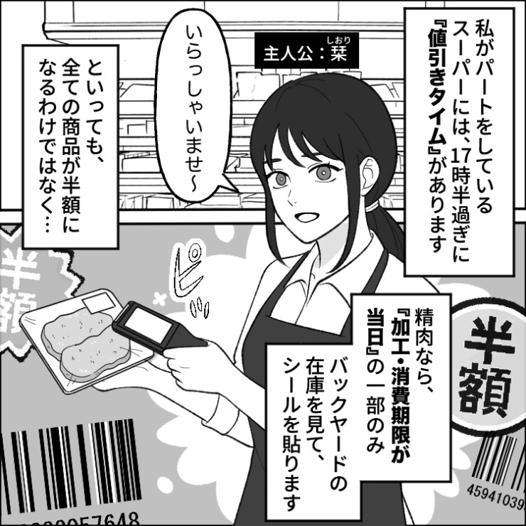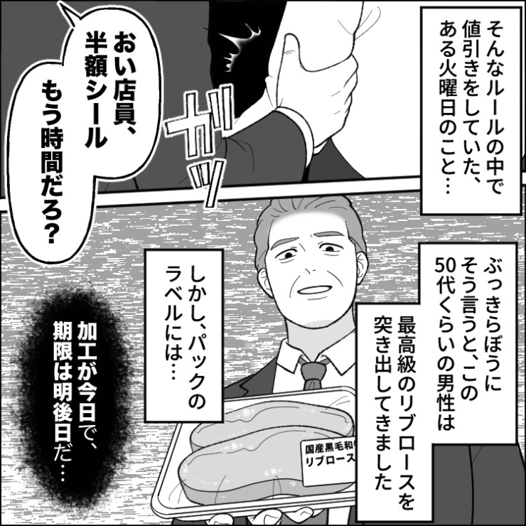 衝撃のエピソードを漫画化!今回は毎日夕方にスーパーにやってきて値引きシールを貼るように強要する迷惑客のお話をご紹介します。