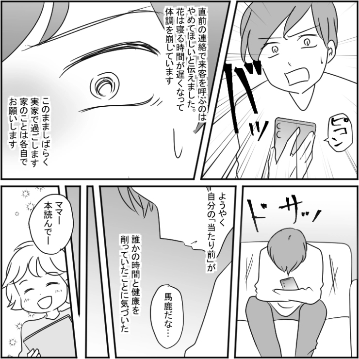 OTHER 2026.02.15「空気読んで笑顔でいろよ。客の前でムッとするな。」同僚を家に招いて宅飲みしたがる夫!いつも情報共有が直前すぎるので、事前に言ってとお願いしても逆ギレするので・・・衝撃のエピソードを漫画化!今回はほぼ毎週のように同僚を呼んで宅飲みを開催し、その連絡が直前すぎる夫のお話をご紹介します。1234#漫画