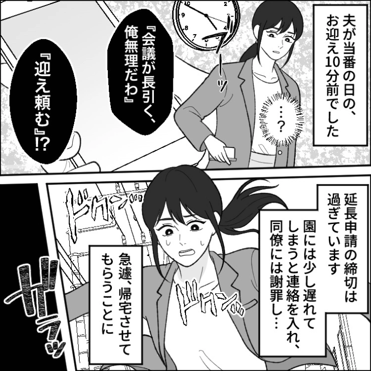OTHER 2026.03.01「緊急で会議が入った」「取引先対応しなきゃ」娘のお迎え時間直前でドタキャンする夫!私が仕事を早退したり、保育園に謝ったり→あまりにも回数が多すぎて怪しいと思い・・・衝撃のエピソードを漫画化!今回は娘のお迎え当番にもかかわらずお迎え時間の直前にいけないと連絡してくる夫のお話をご紹介します。主人公は育休から復帰して1ヶ月。娘の保育園のお迎えは当番制とルールを決めたのですが・・・。123#漫画