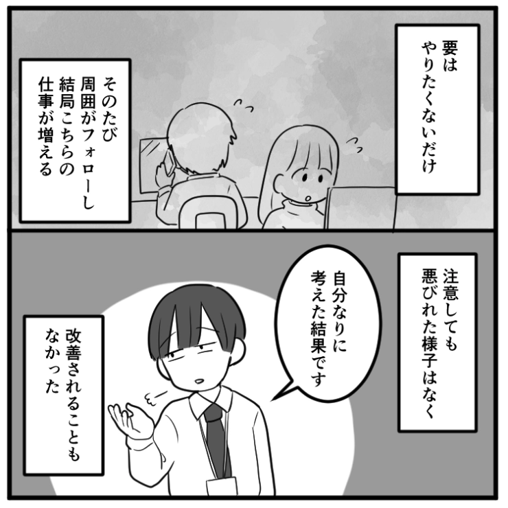 周りが尻拭いしていることにも気づかずにやりたい放題の後輩。さすがに周りが疲弊し始めたので・・・。
