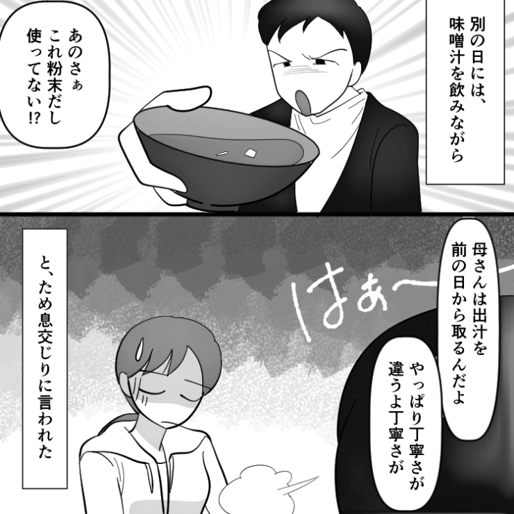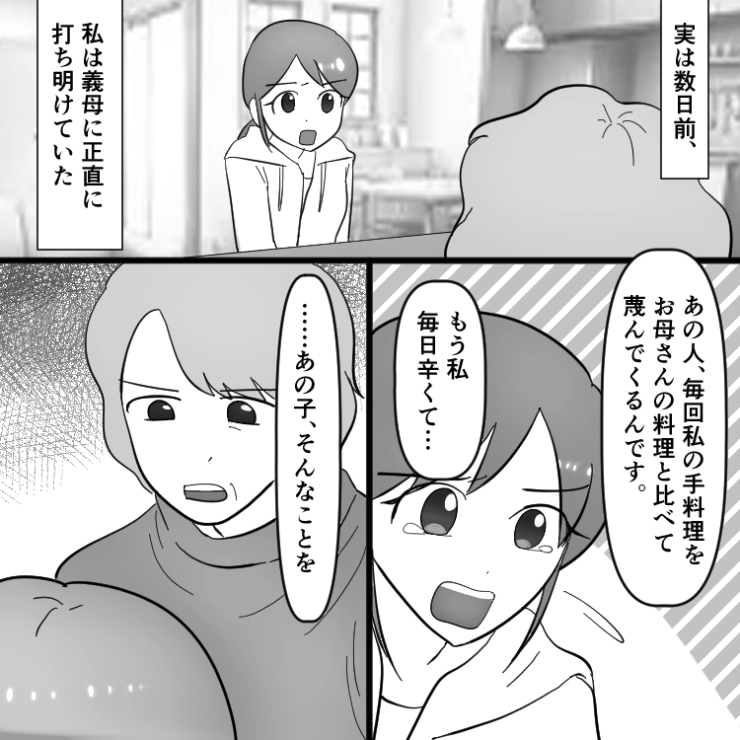 「母さんは前日の夜から丁寧に出汁をとっていた」何事も義母と比較し、私を貶す夫!さすがに度が過ぎるので一か八か当の義母に相談したら予想外の展開になり・・・