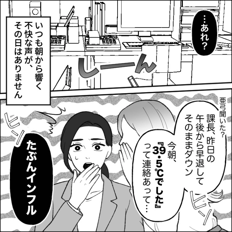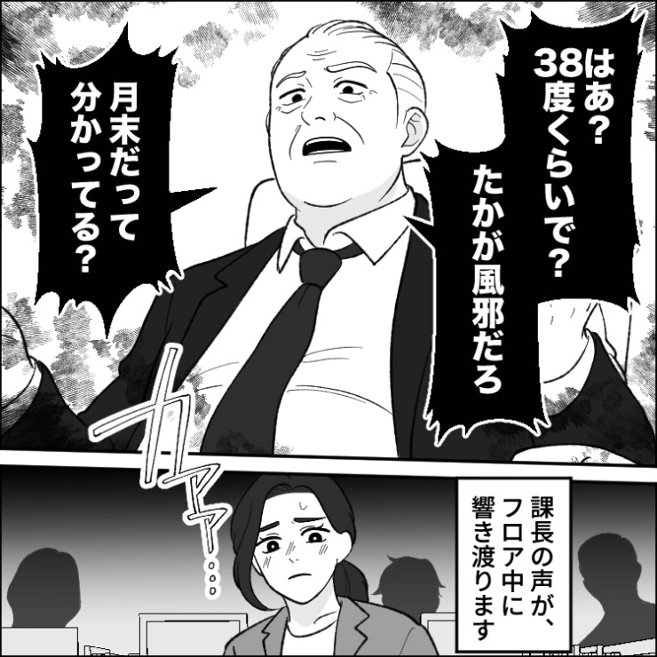 「38度で休むなんてサボり!」体調不良と言っても仮病だと言って絶対に早退させてくれない上司!そのせいで拗らせて翌日休むことに→出勤すると上司が会社にいなかった理由は・・・