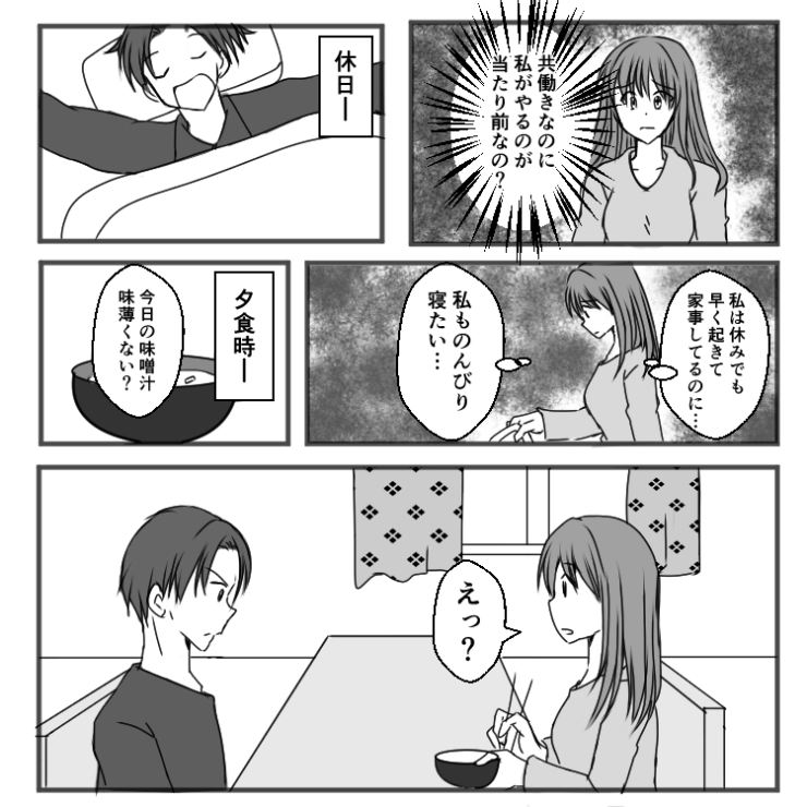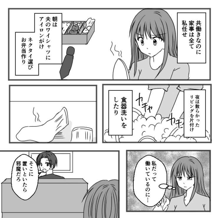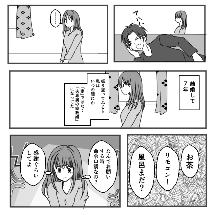 主人公は結婚して7年。働きながら家事もこなしている毎日ですが、夫は家のことは一切何もしないどころか文句ばかりで・・・。