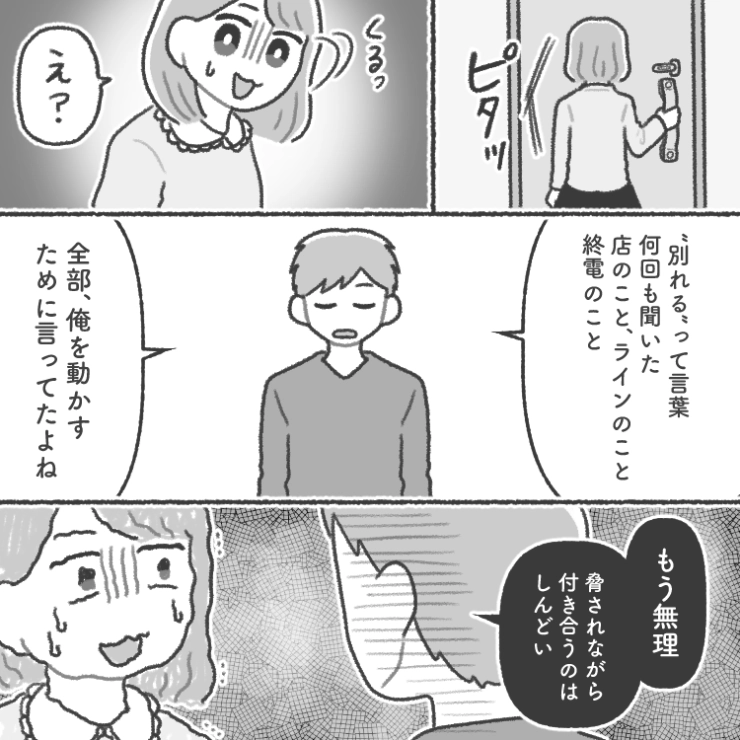 OTHER 2026.04.26「店選びのセンスない、別れたい。」店選びが気に入らなかったり、連絡が遅かったりするとすぐ別れを切り出す彼女!自分の思い通りにならないと脅してくる→お望み通りに・・・衝撃のエピソードを漫画化!今回は自分の思い通りにならないことがあると「別れよう」と脅してくる彼女のお話をご紹介します。1234#漫画
