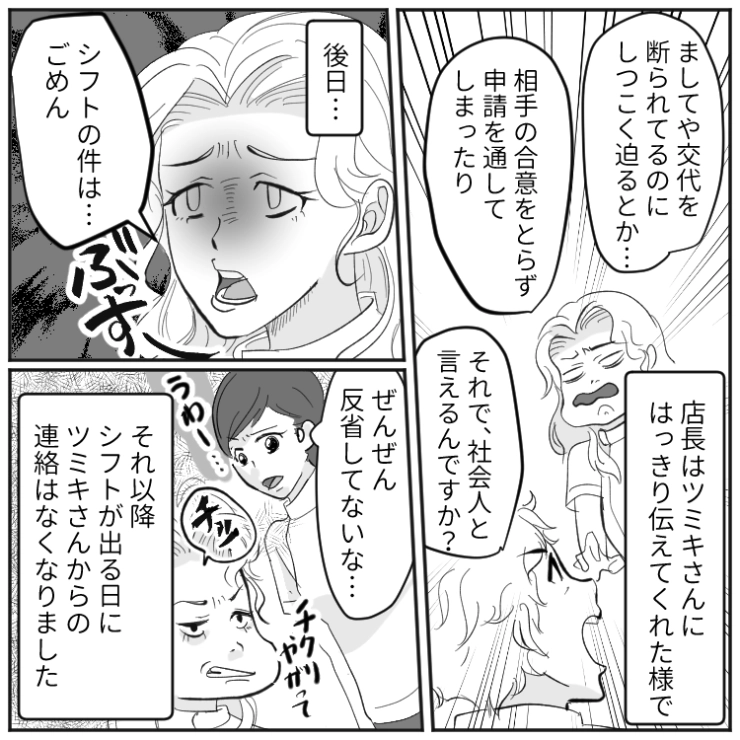 OTHER 2026.04.26「今日も私の代わりにシフト出てね〜」私が休みの日を狙ってシフトの交換を依頼する同僚!断ると不機嫌になる・替わってもお礼がないなど→舐められすぎてムカついたので・・・衝撃のエピソードを漫画化!今回は私が休みの日を狙って私にだけシフトの交換を依頼してくる同僚のお話をご紹介します。1234#漫画