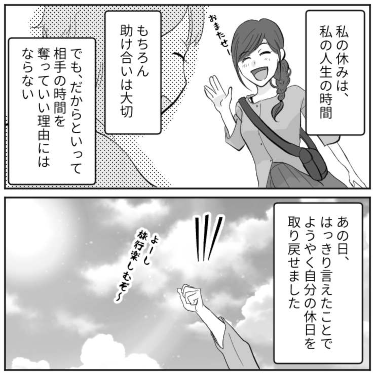 OTHER 2026.04.26「今日も私の代わりにシフト出てね〜」私が休みの日を狙ってシフトの交換を依頼する同僚!断ると不機嫌になる・替わってもお礼がないなど→舐められすぎてムカついたので・・・衝撃のエピソードを漫画化!今回は私が休みの日を狙って私にだけシフトの交換を依頼してくる同僚のお話をご紹介します。人の厚意に甘えて礼儀も感謝も忘れた人間には毅然とした態度で接する必要があると感じた主人公でした。原作・作画/餡爺1234#漫画
