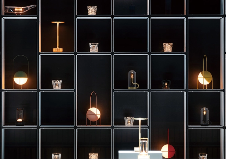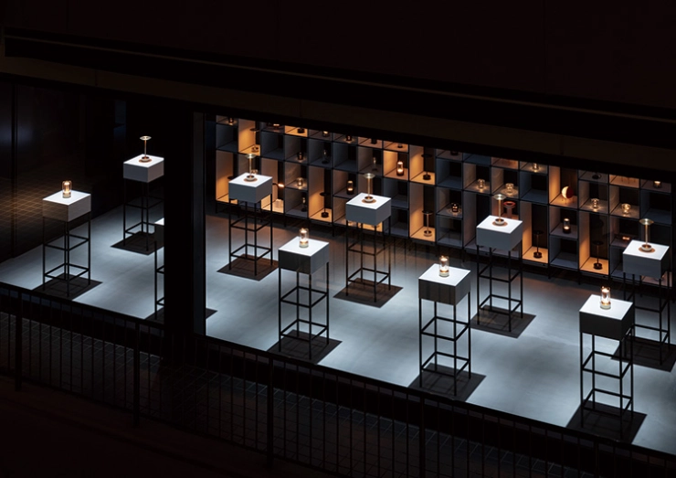 ランプの美しさを引き立てる、光と空間が調和した展示スペース