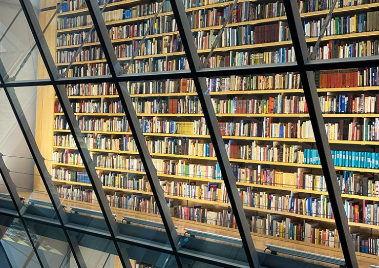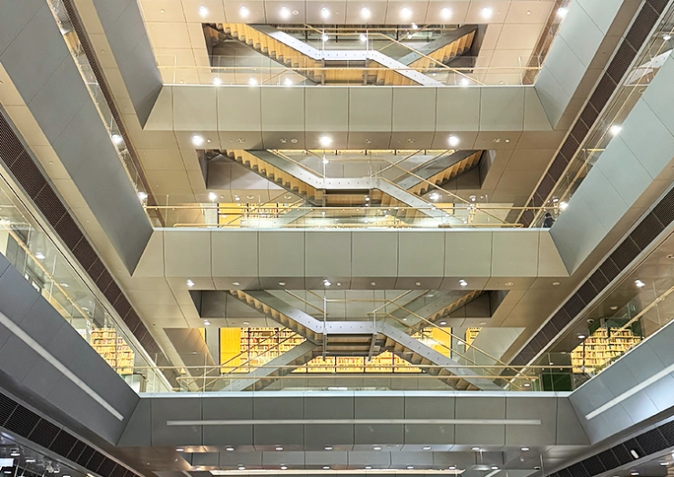 まず館内に入って目に入るのが、何層にも積み重なった巨大な本棚。SNSでも話題のフォトスポットで、吹き抜けの空間にそびえ立つ本の壁は圧巻。ラトビア市民が寄付をした本が積み上げられており、知識と文化の象徴と言われています。