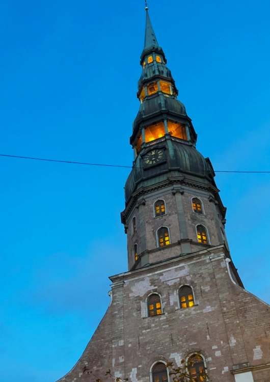 バルト最高峰の尖塔をもつと言われる教会は、街のシンボル的存在。塔の上にある展望台から見下ろすリガの街は、まるで絵本の1ページのよう。旅の最初に訪れたいスポットです。