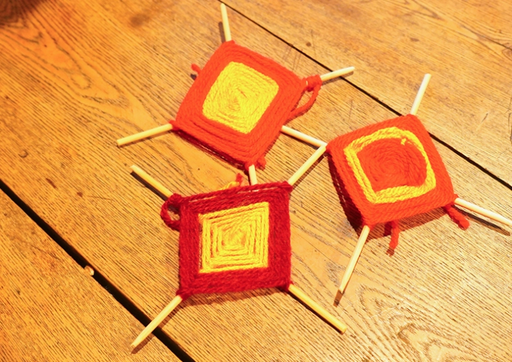 博物館ではワークショップやマーケットなども定期的に開催。今回は2本の棒に毛糸を十字に巻きつけて作る魔除けのお守り「Puzuri(プズリ)」づくりを体験。古くから太陽・守護・繁栄や健康を象徴するアイテムとして知られており、太陽をイメージしたような赤や黄色、オレンジなどの毛糸がステキ。