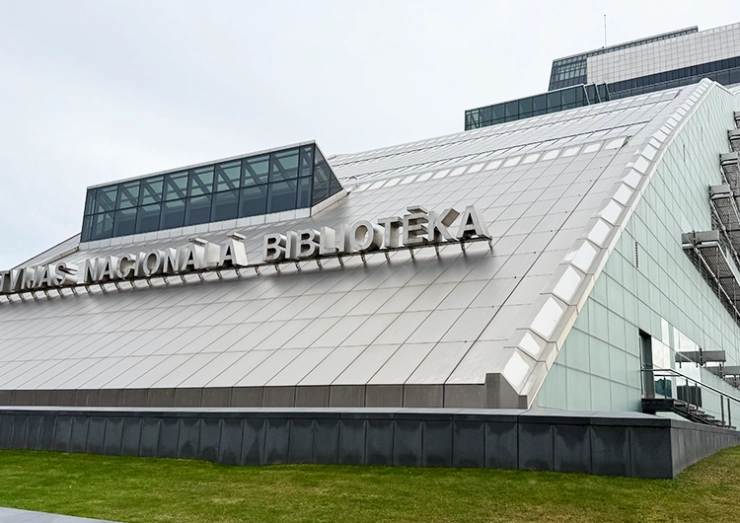 リガ旧市街から橋を越え、約15分歩いた場所にある「Latvijas Nacionālā bibliotēka(ラトビア国立図書館)」。ガラスの山のような外観が印象的なラトビア国立図書館は、リガ新市街のシンボルともいえる近代的な建築物。観光客も入館自体は無料なので、ぜひ立ち寄りたい観光スポットなんです。