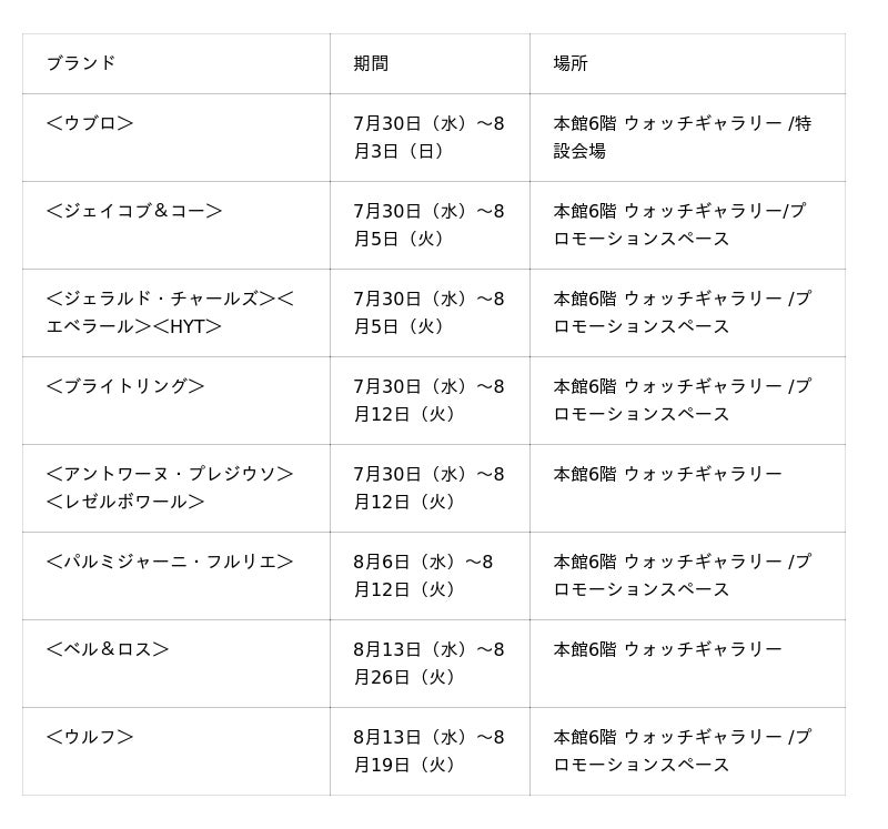 日本橋三越本店は7月30日(水)から8月26日(火)の期間、『第28回 三越ワールドウォッチフェア